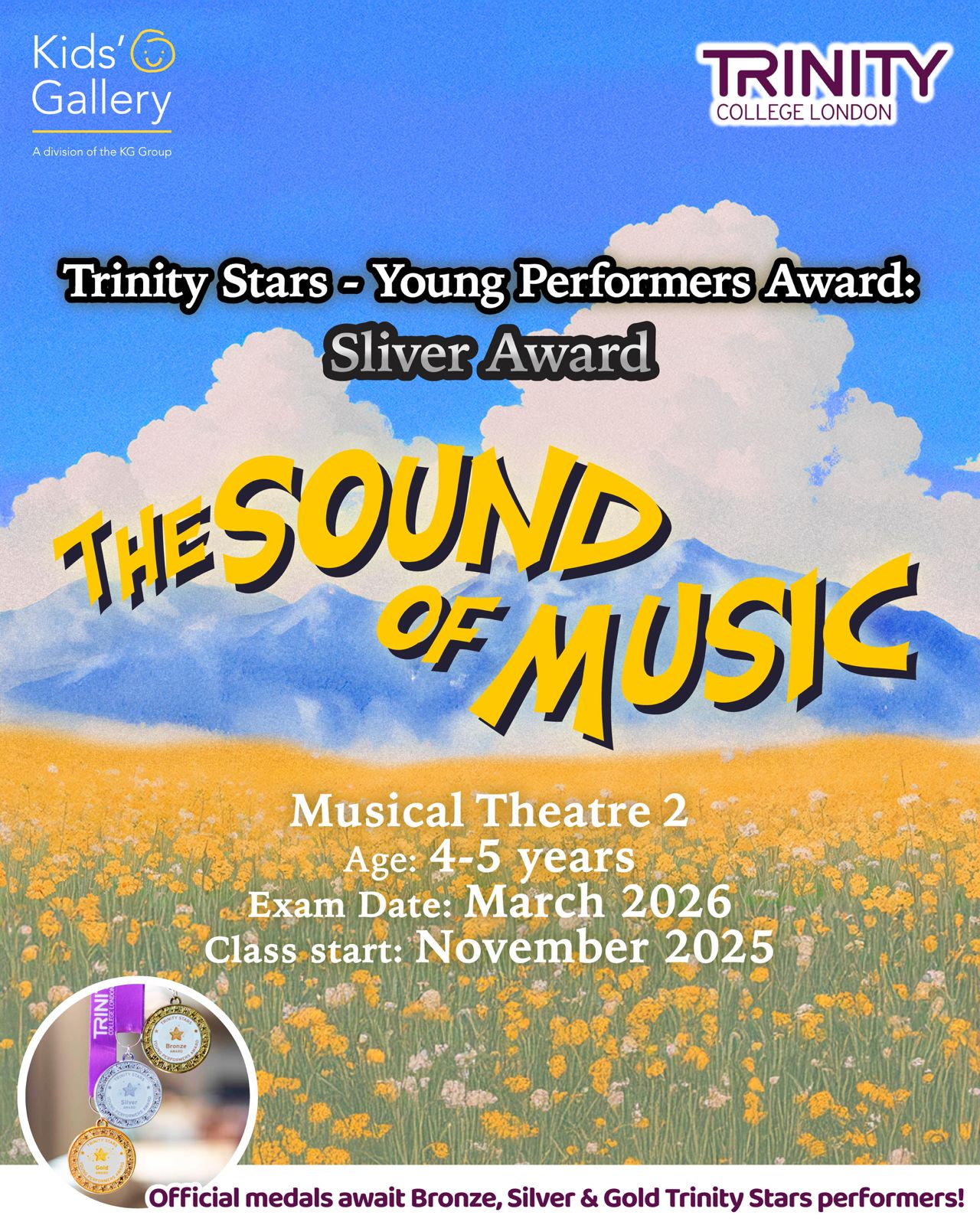 Kids’ Gallery is thrilled to announce the Trinity Stars - Young Performers Awards (YPA) and Musical Theatre (MT) Graded Exams programmes, starting late November 2025. This is a golden opportunity for young performers to shine on stage, build confidence, and achieve internationally recognized qualifications. The Trinity College London in-person exams are provisionally scheduled in March 2026. This is a good opportunity for students to test the skills learnt, gain more confidence and self-assurance, and achieve a recognized qualification. We highly recommend that students enter; however, participation is not compulsory.